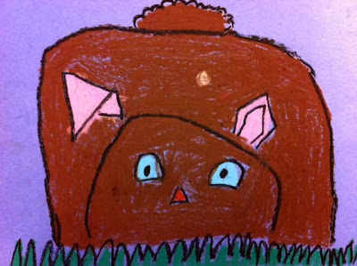 Ohh, who are the sneakiest little bunnies! I did these with my second graders today, using an idea I saw here. It was a great lesson for teaching foreground and background. They also loved doing the little floppy ear. While these would have been good around Easter, it was really snowy here at that time, and it's definitely a project that is better done when the weather is nice and the grass is green.