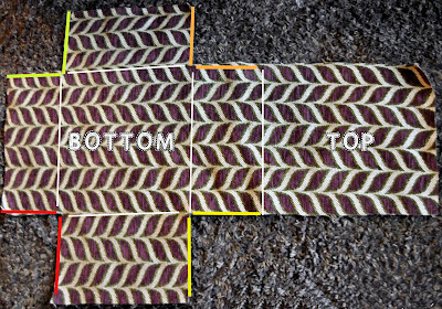 Now you will build your pattern piece, moving your pattern pieces along your piece of fabric, tracing as you go (I used Sharpie but be careful depending on your choice of fabric). You will build your pattern to look like this: